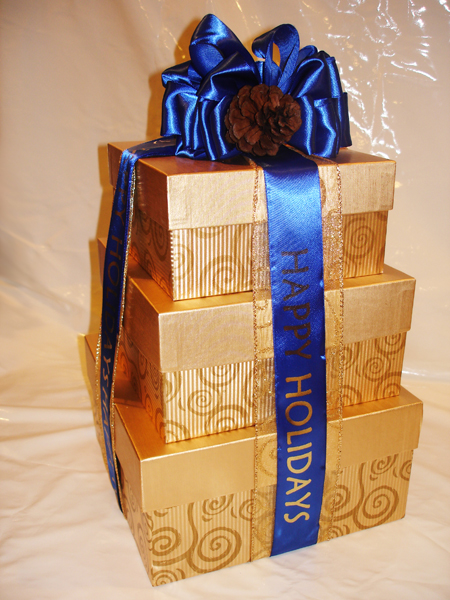 Free gold imprinting with purchase of 3 or more gifts. No setup charge. Choose ribbon color and Imprint message below.