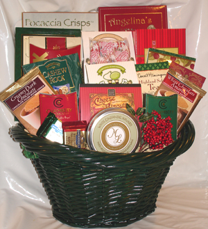 This best-selling, tasteful selection of gourmet treats will send the perfect sentiment to clients, colleagues, friends, and family alike. We’ve combined mouth-watering Italian Double Chocolate Raspberry Cake, Sweet Buttery Cookies, Tuscan-Style Crackers, Smoked Salmon, White Chocolate Macadamia Nut Cookies, Keylime White Chocolate Cookies, Crème-Filled Wafers, Bavarian Pretzel, Harvest Fruit Medley, Cashew Roca, English Tea Cookies, White Chocolate Amaretto Cookie, Dark Chocolate Cookie, Chocolate Truffles, Aged-Cheese Biscuits, Ghirardelli Chocolates, Fine Cheese, Cocoa, and Tea