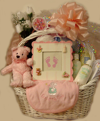 Nothing says welcome better than our Welcome Baby gift basket. We’ll design it in either pink, blue, or yellow and include these baby essentials: a bib, body wash, baby lotion and powder, wash cloths, a picture frame, newborn onsie, socks, a cuddly teddy bear, a blanket, and a teething ring (or rattle) or a baby’s handprint (or footprint) kit.  Tell us if it’s a girl or a boy or both! Add a lullaby CD below.Â